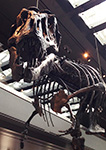 “I’m guessing about 70 percent of this skeleton are real bones,” she says while she points at one of the T.-rex on display. Skulls however, she explains to me, are almost always casts.